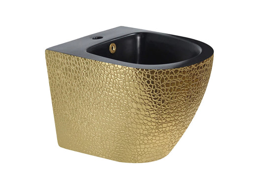 Hangend rimless toilet - Bidet - Alaska Mat zwart, Goud - 49x37x37cm