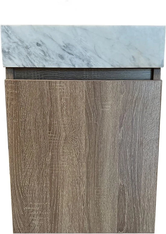 Onderkast met fontein (zonder kraangat) - Oxfort Bruin eiken, Wit marmer - 22x40x55cm
