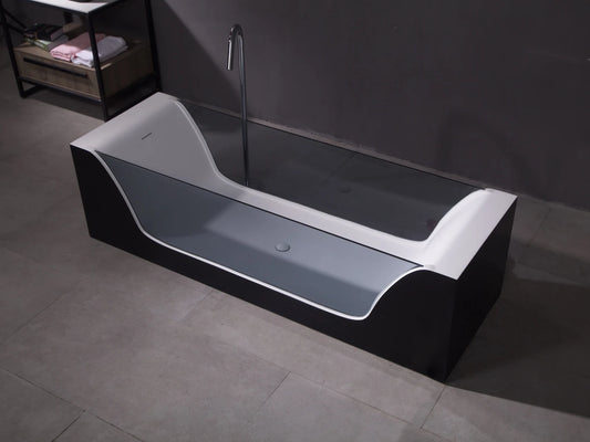 Vrijstaand bad - Solid surface - Donker glas - Dale Mat wit, Mat zwart - 200x65x56cm