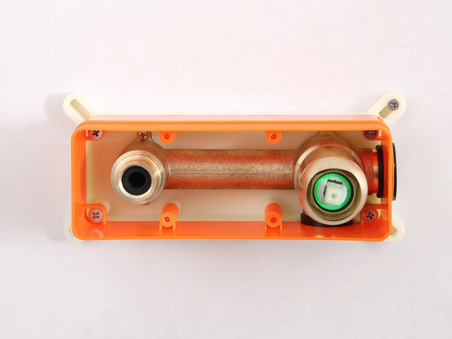 Voorzien van: een inbouwbox voor eenvoudige installatie, warm/koud mixer, aansluitmateriaal.