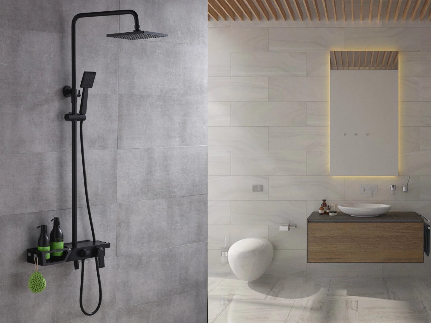 De hoofddouche en handdouche.