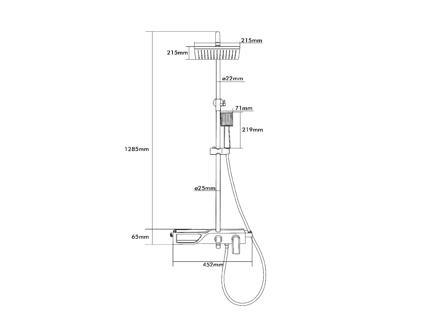 Douchekop: 21,5 x 21,5 cm.